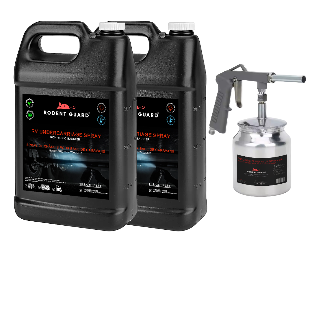 Keep your RV protected with Rodent Guard™ Lubricating Barrier Spray. This simple, non-toxic blend creates an effective physical barrier using a mineral oil base blend.